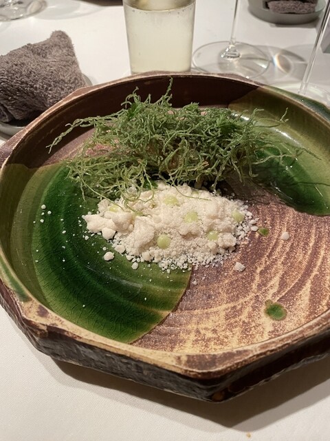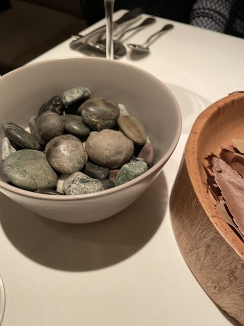 同僚と今年1番の食事会をしよう!ということで高級ビストロ初訪問。スペシャルコース『ムニュ イマジネーション』とお酒は各料理とワインと日本酒の混在するディナーペアリングセットを注文。結論、今年1番の食事会となりました!全ての料理に仕掛けが施されており、食事中ワクワク感が止まりません!葉っぱの中からポテチ、石の中からパンを探すエンタメで料理のスタート。全ての料理に沢山の職人仕事が施されおり、基本的に全てが上質な料理なのですが、テーブルに運ばれてきてからも、ワクワクする仕掛けが発動されます。透明なトマト風味の追いかけソース、トリュフかけまくり演出、カキフライ用のタルタルソースをお客様自ら作る演出などなど、食事しながらエンタメ施設にいるときの興奮状態が続きます。多くの料理が初体験のものでしたが、前菜の鮑の昆布トマトソース仕立て、鰻とあん肝のトリュフかけ、見たことないカキフライが特に印象的でした。ワインと日本酒は料理に合わせて7杯から8杯提供されますが、とても考えられており、完璧なマリアージュでございました。料理のクオリティの高さ、施されている仕事と仕掛け、白金という立地によりお値段は張りますが、その価格を上回る価値がここにはあります。高いだけのお店は沢山ありますが、レベルが違います!ということで個人的な意見で恐縮ですが、今年1番のお店となりました。