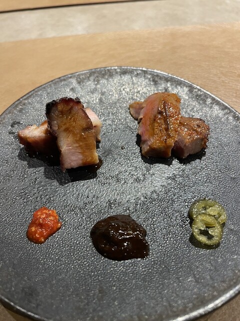 今年の忘年会はじめに相応しい、素晴らしいお店に訪問することができました。完全予約制でコースのみの展開。今回は18,500円の11品のコースでお願いしました。お洒落割烹のような佇まい、店内同様、兎に角、一品ずつ運ばれてくる料理のお皿、盛り付けが美しい。割烹料理店のようなコースです。