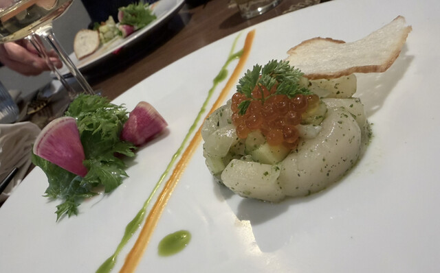 元リーガロイヤルホテルのシェフの予約制のお店、クリスマスコース12,500円を注文、アミューズが鰻のクロケット…美味しい、これは最初から良い感じ、料理はしっかりしたフランス料理でワインが進む美味しさ、メインは鴨のロースト、美味しくてリーズナブルまた行きたくなる味でした。
