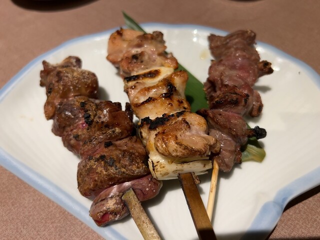 そしてこちらは串焼きも美味しいんです、ねぎま、レバ、砂肝(塩)。