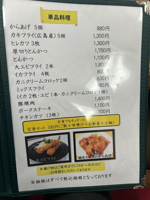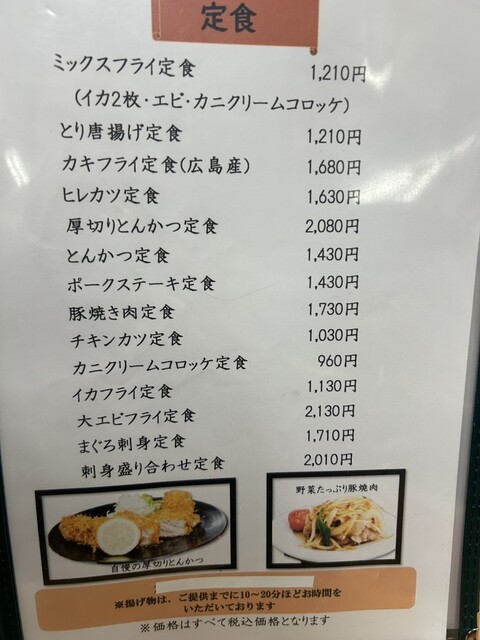 チキンカツ定食1,030円、五目ラーメン(あっさり塩味)980円、鉄火巻き一本440円、納豆巻き一本250円、お刺身盛り一人前1,680円、生ビール700円2杯を注文。