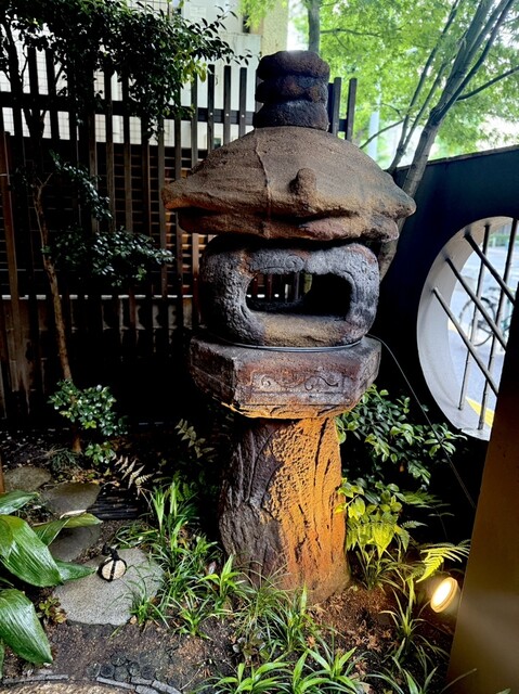 入口には和の佇まいの中庭があり大きな石灯籠が置いてあります。