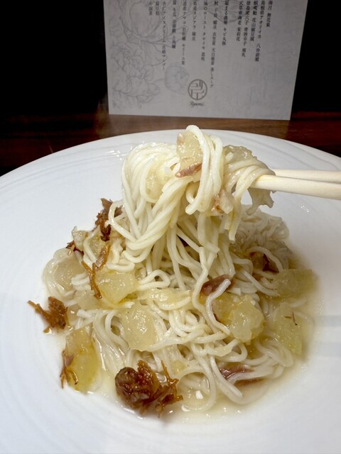 ♦︎〆にはXO醤と冬瓜、金華ハムの旨味が染み込んだ上海麺