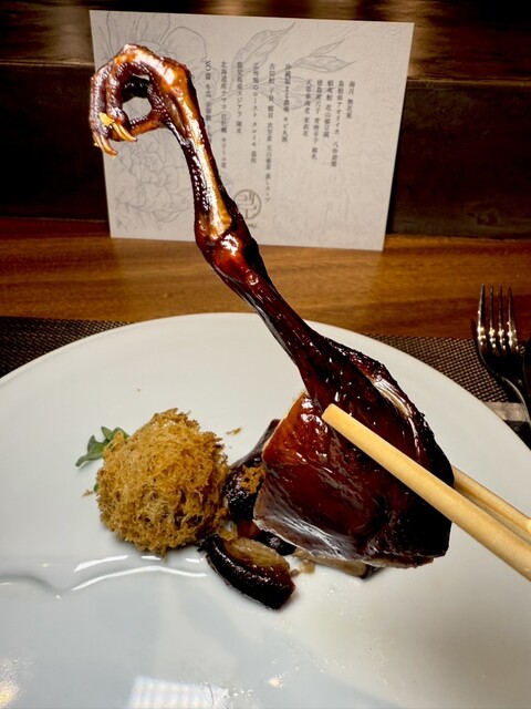 鴨の旨味が凝縮され、中にはライチとズワイガニ