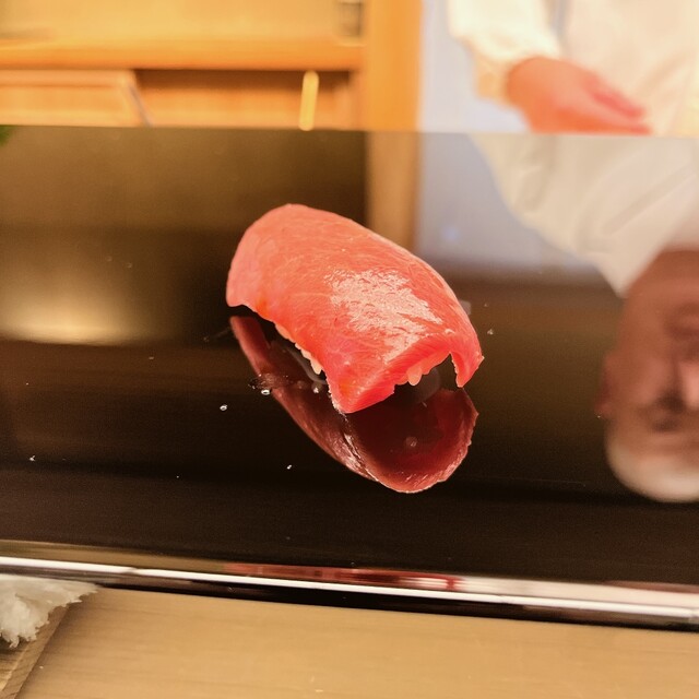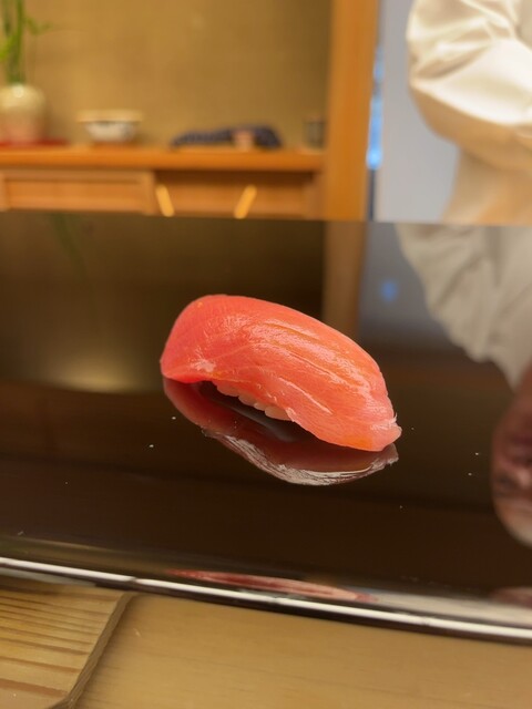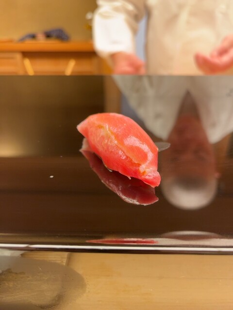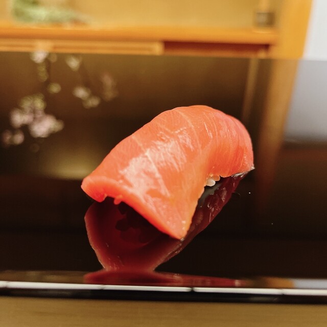 千葉鴨川の定置網にかかった鮪から切り出された大トロはまだあらいさんが「ちょっと若い」というだけあって熟成というより身の弾力と蕩ける脂のコンビネーションを感じる一貫でした.