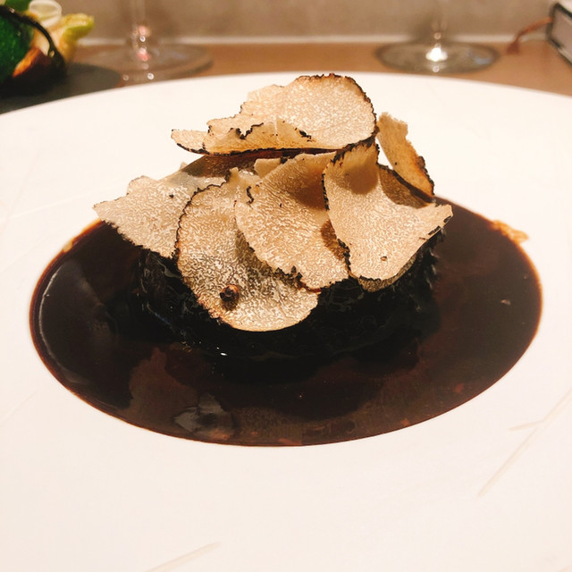 これが雉かという強烈な香り。かなり癖がありますと言われましたが確かにその通り。野生の熟成香ですね。コンソメの下の椎茸フランが雉の香りを幾分和らげています。コンソメ自体はとてもクリアで奥行きがある味わいで丁寧に取ったんだろうなという印象。なかなか興味深い一皿でした。