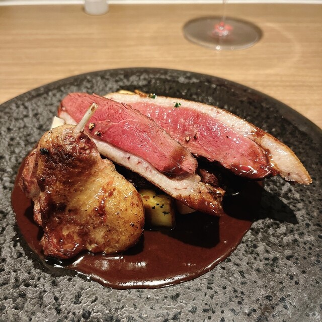 この日はジビエ以外でもハイレベルな料理を提供するお店だということを再確認できました。鮎のショーソンはその典型。鮎ということから我々が想像する味と全く別の繊細さに特化した料理。こういうのを経験するとまたジビエのシーズンに通うのが楽しみになります。