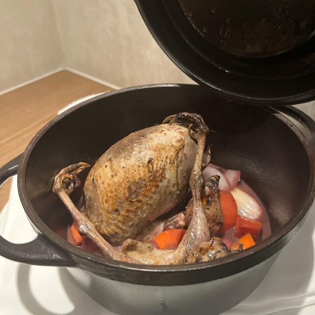 この日のメインは猪、鴨、牛、山シギと揃っていましたが、鴨を選択. どんなコースになるのか楽しみです.