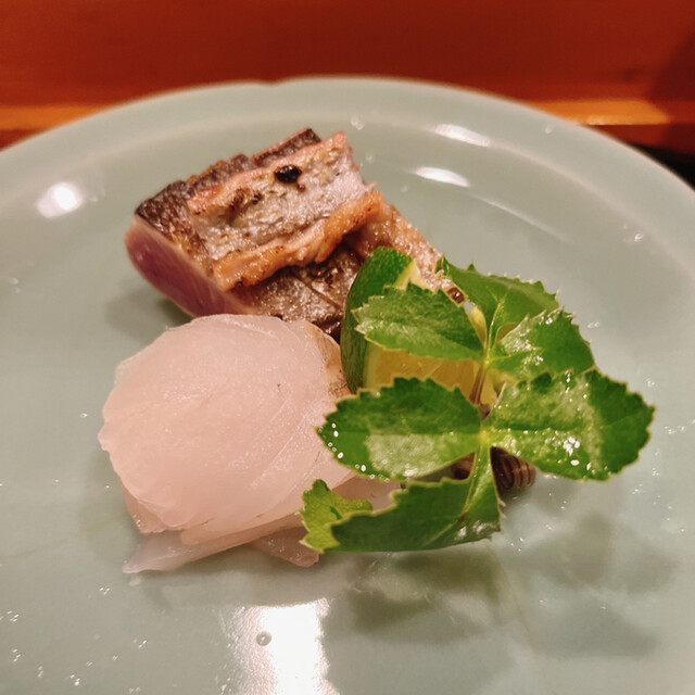 クエにはふっくらと火が入って塩気もいい塩梅です. 鮎以外で蓼が添えられるのは初めてですが悪くない味でした.