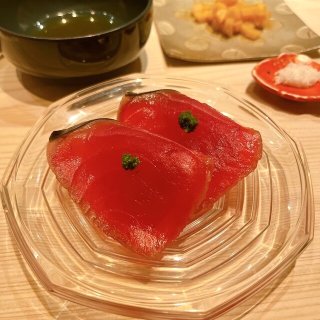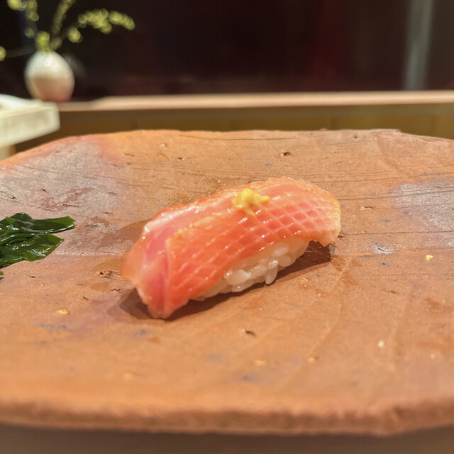 そんなシャリを使った握りは銚子の金目鯛でスタート。三厩産の釣り鮪は夏の鮪の酸味と秋冬の鮪の脂を兼ね備えた逸品でした。