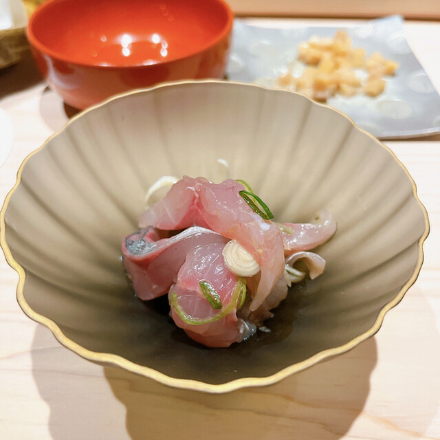 鯵の薬味和え。ぷりぷりした弾力が魅力的。