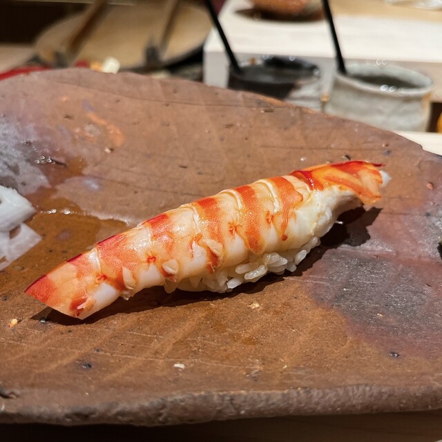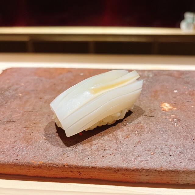 握りに入って先頭バッターは金目鯛. 骨出汁に漬けた金目鯛の旨みにいつもながら圧倒されます. これがシャリとの相性良くてたまりません. 船橋三番瀬の小肌やパチっとした食感の墨烏賊も美味しかった.