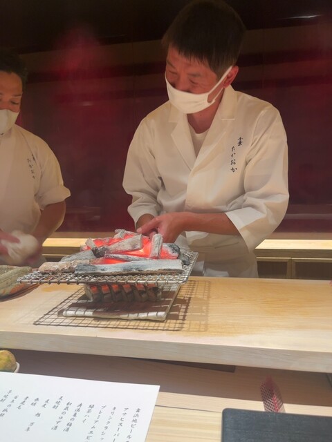 さてご主人に挨拶してコースが始まります. カウンター内はいつもの面子で安定した流れ. 全てたかおかさんに任せて委ねると極上の2時間でした.