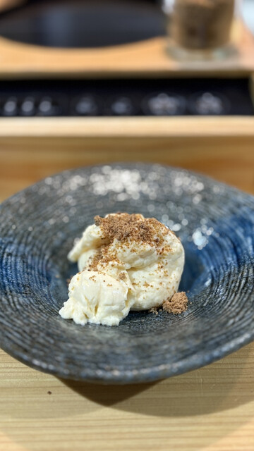 カレーの後におすすめとのことだったので、黒糖仕上げの白味噌ぷりんを追加注文。80度で均等に加熱するための調理機器がないので(布施にはある)、湯せんするために風船に入れて調理。風船のまま提供されて、ピンでつついて封を切ってから、お好みで黒糖をふりかけていただく。あとからやって来る白味噌の風味がなんとも言えない余韻になる。