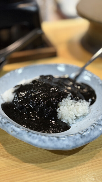 炊き立てのごはんは、しゃぶしゃぶやとんかつと一緒に少しずついただき、最後にカレーを。あぐー豚骨を30時間煮込み、竹炭がうっすら香る黒カレーは、甘さと辛さの調和のとれた、これまた逸品。