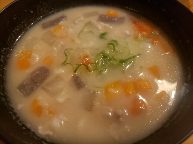 鯨のお出汁がしっかりと染み出て、シャキシャキ水菜と絡む。