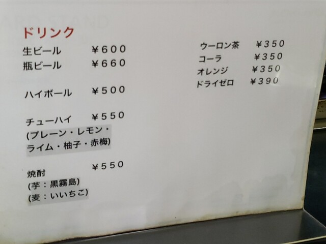 (※写真2)メニュー(ドリンク)