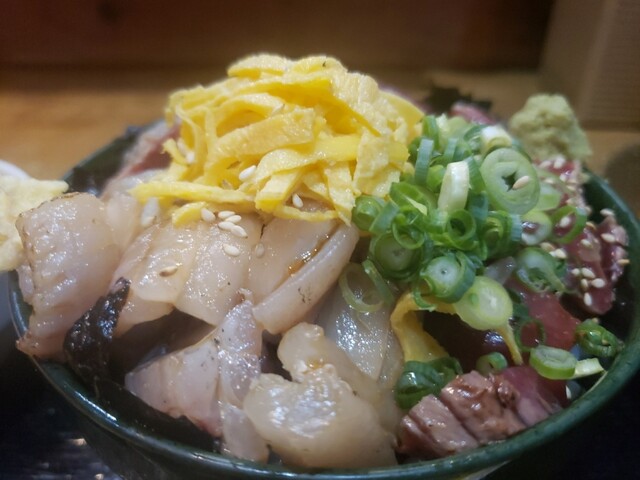 丼の器自体は少々小ぶりに見えますが、マグロサイド、タチウオサイド、