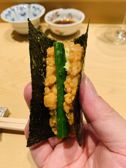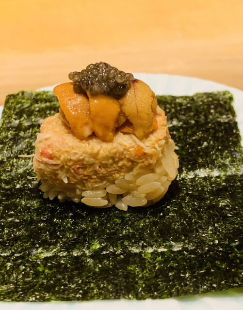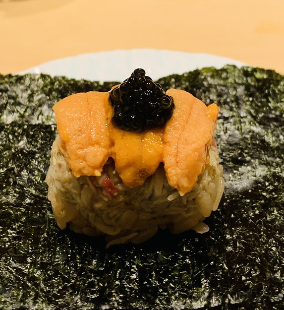 ・港区巻き(北海道噴火湾産香箱蟹とバフンウニ 由うオリジナルキャビアのせ)