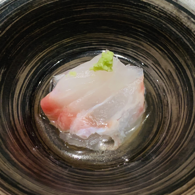 この日のつまみは煎り酒で頂く愛媛県産クエ、