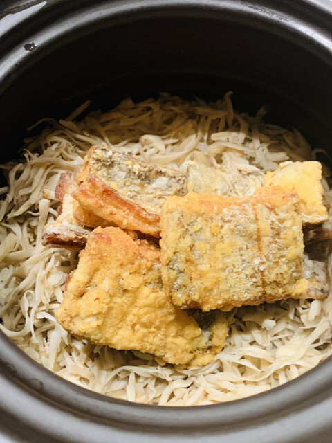 ・太刀魚の竜田揚げと舞茸の土鍋ご飯2