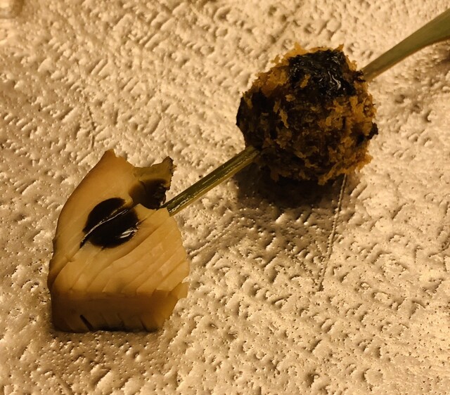 ・蒸し鮑と鮑の肝入りクリームコロッケ串