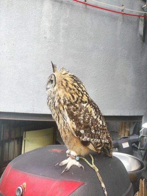 さて、お店の外の「フクロウちゃん」に挨拶して帰るとしよう。