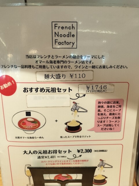 Bはラーメン、リゾット、ドリンク、サラダのセットとのこと
