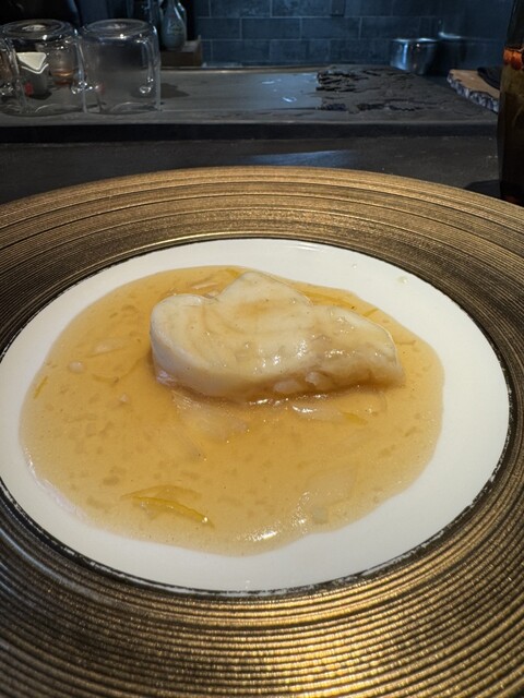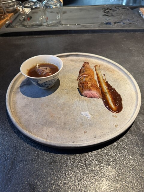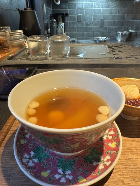 鳩、洋梨、陳皮、杏仁の蒸しスープ