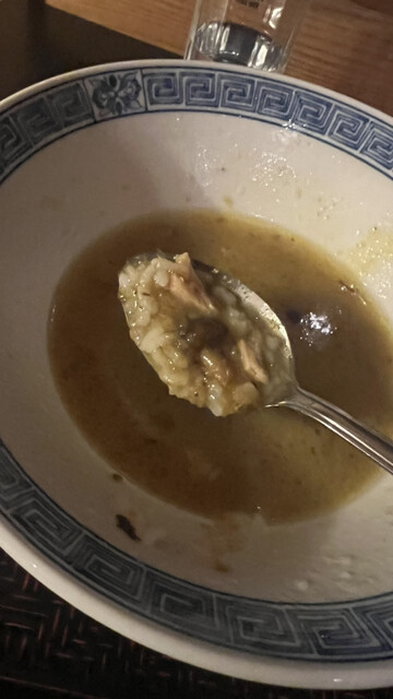 ラーメン雑炊にするとダブルで魚介の旨味がコクうま‼️