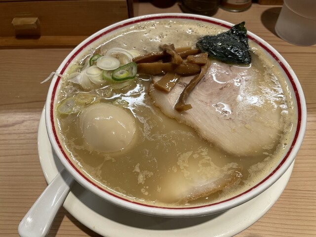 注文した「味玉中華そば」は動物系の素材をベースにした濃厚な魚介豚骨醤油スープと自家製の中細ストレート麺がマッチして美味。