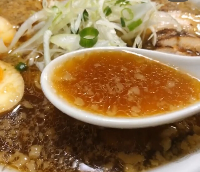 本来は淡麗醤油ラーメンだが面白い事に無料背脂トッピングもあるFUNKYなお店☝️