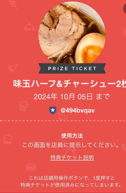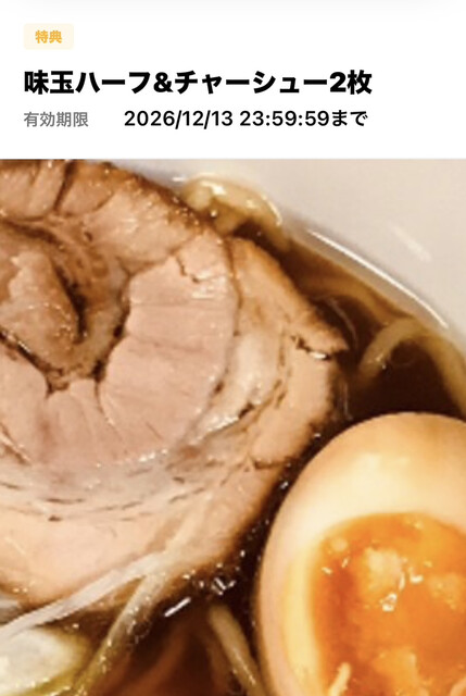 半玉、チャーシュー2枚無料