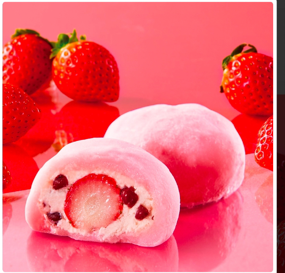 苺をまるごと包んだクリーム入りの大福です。 ピンク色に色付けしたやわらかくフワフワの雪平生地で、一粒苺と粒餡・生クリームを加えたホイップクリームを包みました。クリームはミルク感が感じられるよう粒餡の配合量を調整し、さっぱりと程よい甘さのクリームに仕上げました。 やわらかなもち、水みずしい苺、ほのかに小豆のおいしさが感じられるクリーム、3つの味わいが調和した至福の逸品です。
