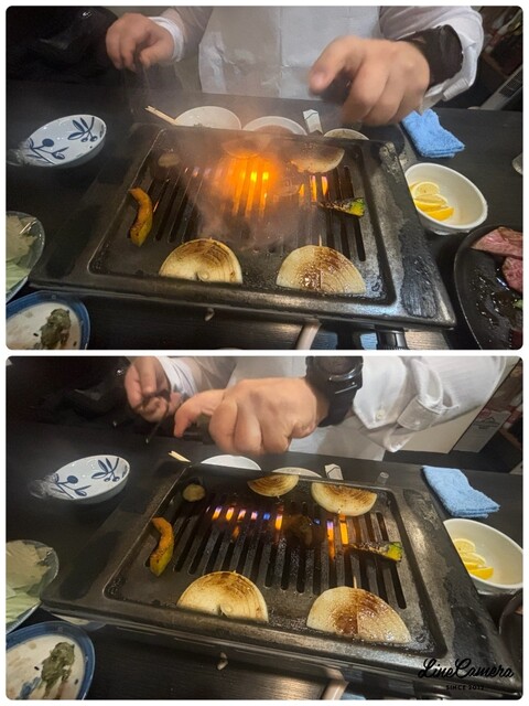 美味しそうなハラミからスタートです♪焼肉愛の強いお客様が焼いてくれます♪良いお肉を一番美味しい状態で食べれるのが嬉しいですよよよん♡