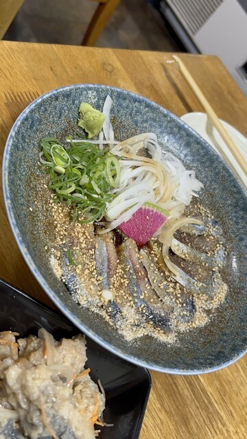 ひらまさの唐揚げとごまさばとのセットの「本日のおすすめ定食」と、「本日のおすすめ丼」はかんぱち丼のごまざば付き❗️