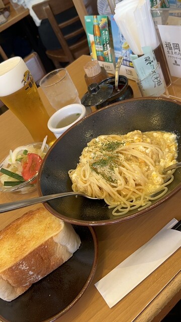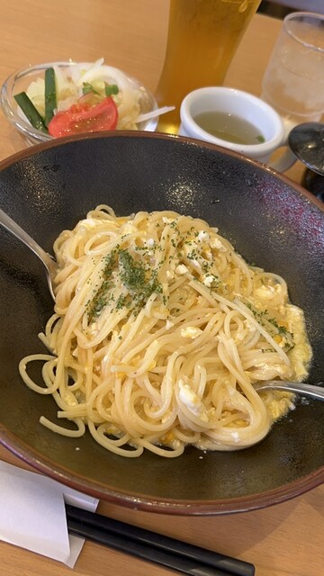 ペペロンチーノ風のたまごを使用したパスタ