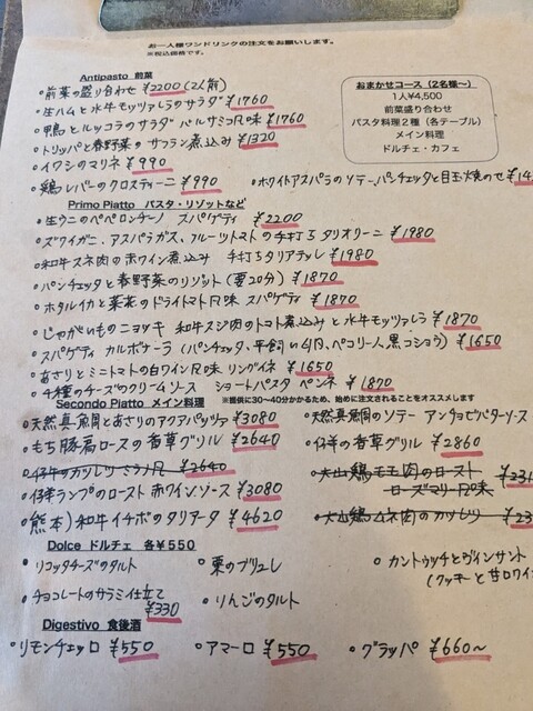 料理が美味し過ぎて、ワイン2本空けてしまいました。イワシのマリネもニョッキも、カツレツもアペタイザーも。どれもこれも美味すぎたんです。