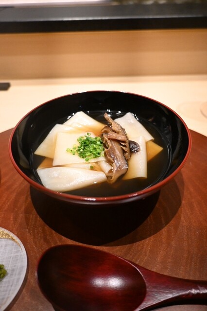 お出汁は長期熟成昆布を使用、本当に濃厚でうまみがぎゅっと詰まっており、もはや昆布そのまま食べているかのような感覚。かつお節は完全に乾燥する前の、少ししっとりしたかつお節で、生ハムのような感覚で頂きます。