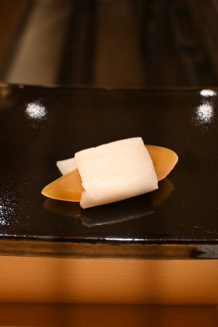 個人的に大好きなネタ。こちらは食感がしっかりめのタイプ。塩と酢橘がイカの甘さを最大限に引き立ていました。