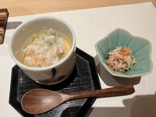 出始め香箱かに、カワハギ肝のせ、ウニイクラ、車海老、鮑…