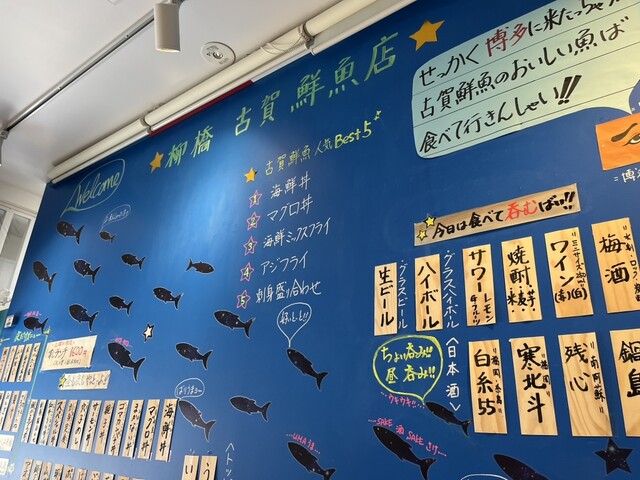 博多の台所を支える柳橋連合市場内に古賀鮮魚店さんがあります。柳橋市場は鮮魚店をメインに青果店や乾物店、畜肉店、飲食店が40店ほどあり、このアーケードを散策し買い物や飲食をするのがこれまた楽しいです。