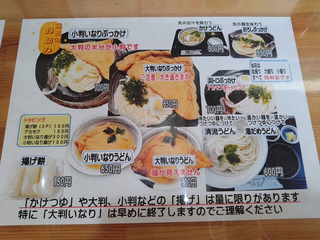 うどんは大盛りにすれば良かったかなぁ?大判の揚げにすれば良かったかなぁ?と食べ終わった後に思うけど「大き過ぎます」とか「麺が見えません」など書いてあるし・・・。