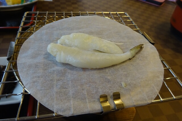 翌朝の朝ごはんには、焼きふぐが出ました。