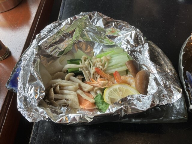 こちらもお肉とは別に2品選べたので「野菜とシーフードのホイル包み焼き」「エビフライ タルタルソース」にしました。