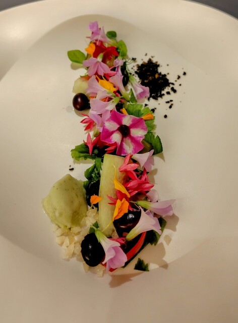 一言で表すと、この小さな一軒家の舞台に脚本(料理を出す流れ)、演出(盛り付け)、小道具(イメージを伝えて特注した有田焼食器へのこだわり)まで細部にわたる細やかなシェフの指示の元織り成す物語りを観たような2時間30分でした。