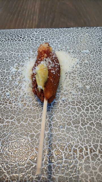 あまり見ないややレアさを感じるパテ・アンクルートはホロホロとした食感だが口内でしっかりジビエの美味しさが広がり濃厚、牡蠣もそのままの旨さでさっぱりとした後、松葉カニ クリームコロッケもレグリスが得意とする高級洋食系。カニたっぷりを堪能して美味しかったです。