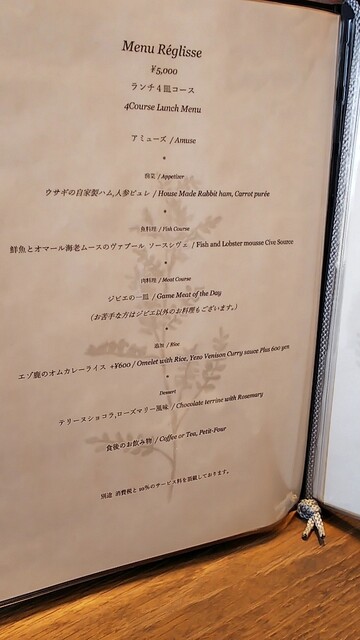 《レグリス二周年記念メニュー》¥20.000(ペアリング付き・税込)を頂きました。