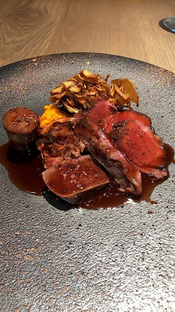 各部位をそれぞれ楽しめる上に、ソースとマッシュポテトがフォアグラの脂っぽさを感じず飽きさせずに頂ける。