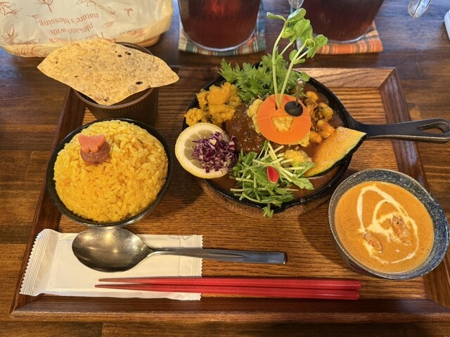 煮込みハンバーグカレー膳 950円+海の幸カレートッピング+400円→1350円